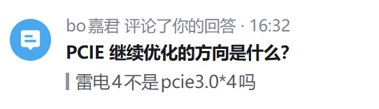 除了OCuLink有直连的优势外,雷电还有一个缺陷就是强制把一部分带宽用于视频输出,也就意味着实际的传输速度由满血的所谓40Gbps砍到了大概28Gbps,这个带宽基本就是PCIe 3.0 x4的速度,所以某些网友会认为雷电的扩展坞就是PCIe 3.0 x4,比如这位: