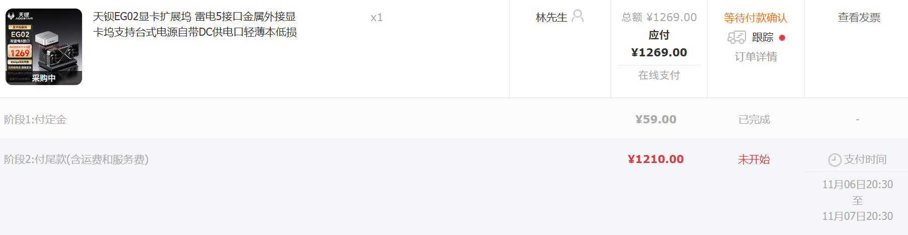 虽然上面这货性价比很高,但是我不买,不满足需求,大家知道大路哥今年为了各种测试入手了RTX5090D v2,性能上基本等效于RTX5090D,只是显存为24GB,除了天钡以外,国内还有一家小众厂商有显卡坞。
