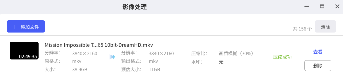 比如它的压缩比包含了几种模式,以30%的设定为例,它直接定义为【画质模糊】我认为是十分不合理的,因为这个压缩比出来的视频,如果你视频本身就是超高清或者4K,压缩出来的视频不可能达到【模糊】的底部,实际上根本就没降低个啥,因为很多片源本身就过于超纲——为了所谓的大而大。