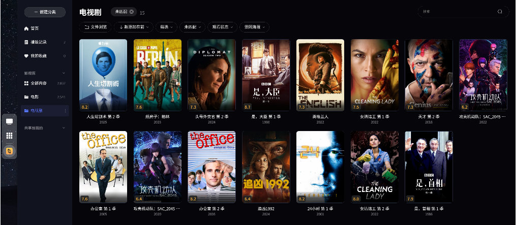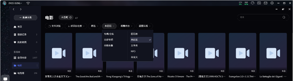 最常用的模糊筛选是电影/电视剧分类,然后选择对应的封面,刷的一下刮削数据就生成了: