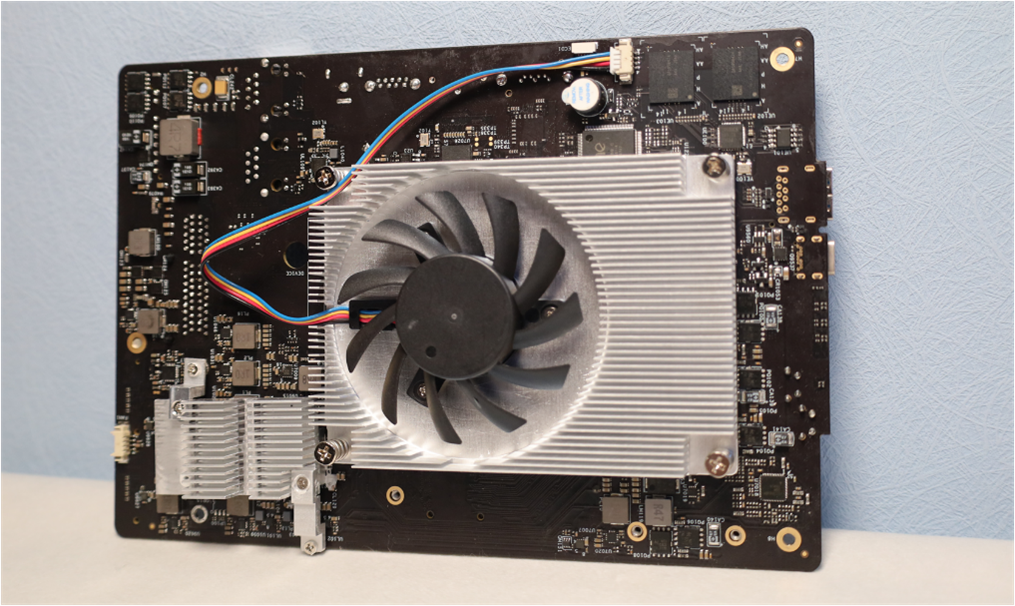 毕竟这颗是65瓦输出,可以从硬盘笼内部看到主板背面的散热模组了: