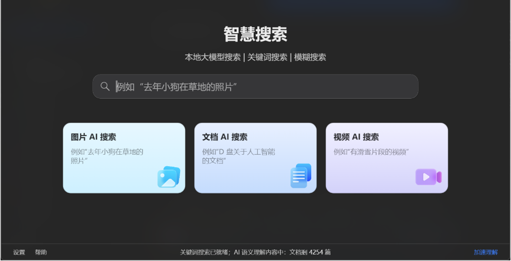 一样可以做到搜图、搜视频、文档语义理解总结内容,且包含大语言模型对话: