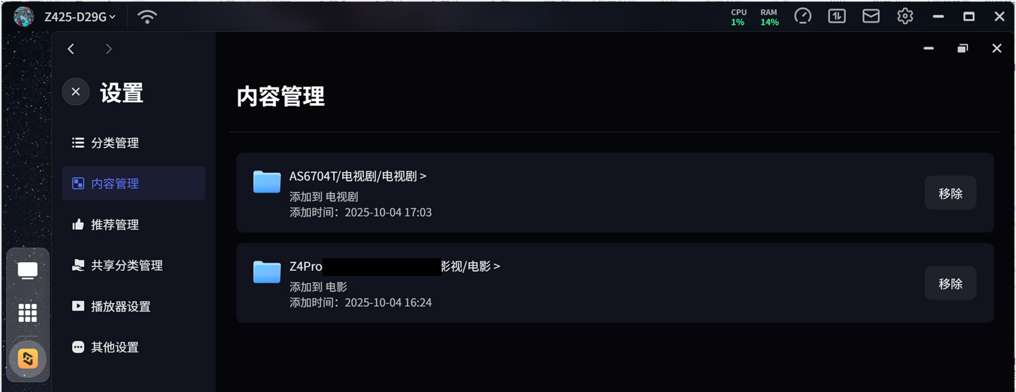 如上这些都是可以纳入到极影视中生成影视墙的,甚至WebDAV可以支持IP v6、DDNS,我甚至实测过,这个非常有意思,比如下面两个目录我就用了不同的协议:AS6704T用的SMB,Z4Pro用的WebDAV