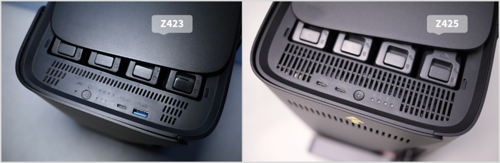 而新款的极空间私有云Z425可以说在这8个字上再抠细节,继续深耕。因为单独从外观来看区别不大,同样是至高4机械+4固态的设计,后面背了一个小书包的外挂充电宝UPS,没了嘛。在没有拿到这款机器之前极空间就给我透露了一个细节:双雷电4!!