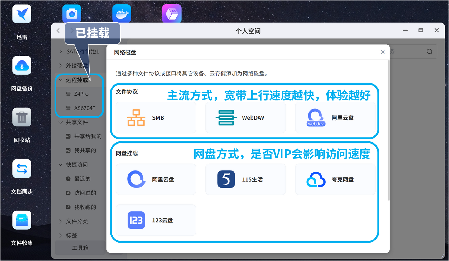 如下是大路哥已经挂载的和极空间目前支持的挂载方案: