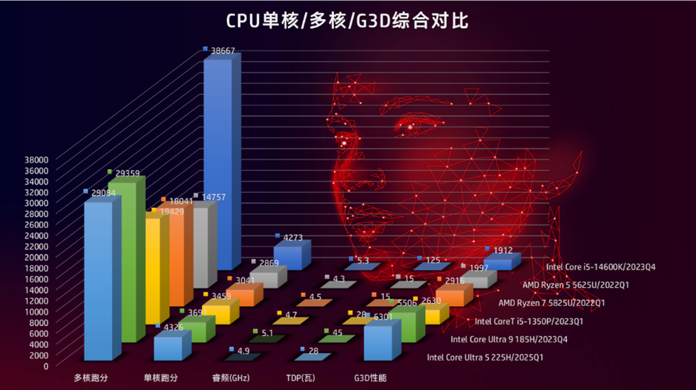 结果拿到机器一看果然不出我的所料,并不是i5-1340p,也不是酷睿Ultra9 185H,而是用的和我的轻薄笔记本同款SKU——酷睿Ultra5 225H!!!我当时就惊呆了,我知道极空间一向不让我们失望,但是这个给的也太猛了吧?可能很多朋友没有什么感受,我简单制作一个表格给大家参考下: