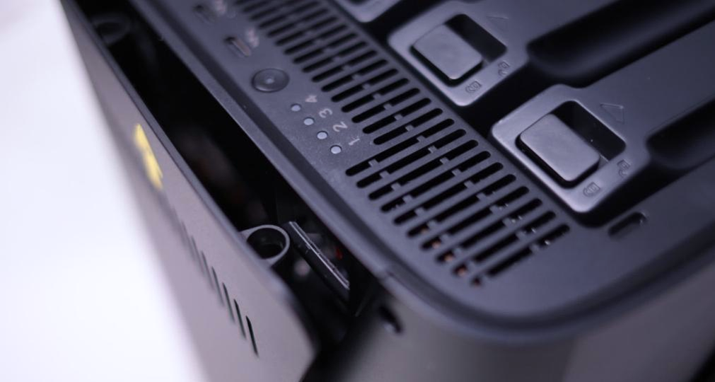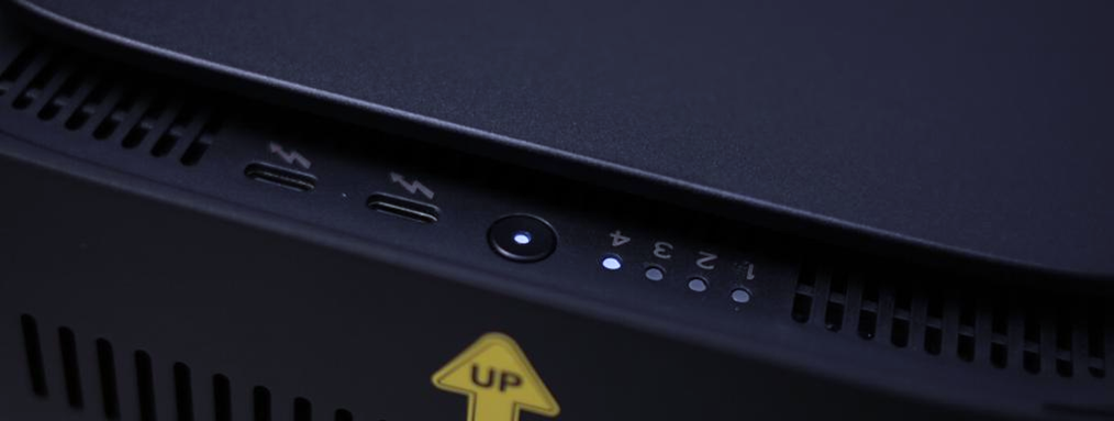 可以看到极空间Z425在顶部提供了两个雷电4接口,而从散热孔的设计来看和Z423一致,基于底部吸入冷风,上部吹出热风,但是又有点不同,哪里不同呢?极空间可是给了65瓦的最大输出哦!!!