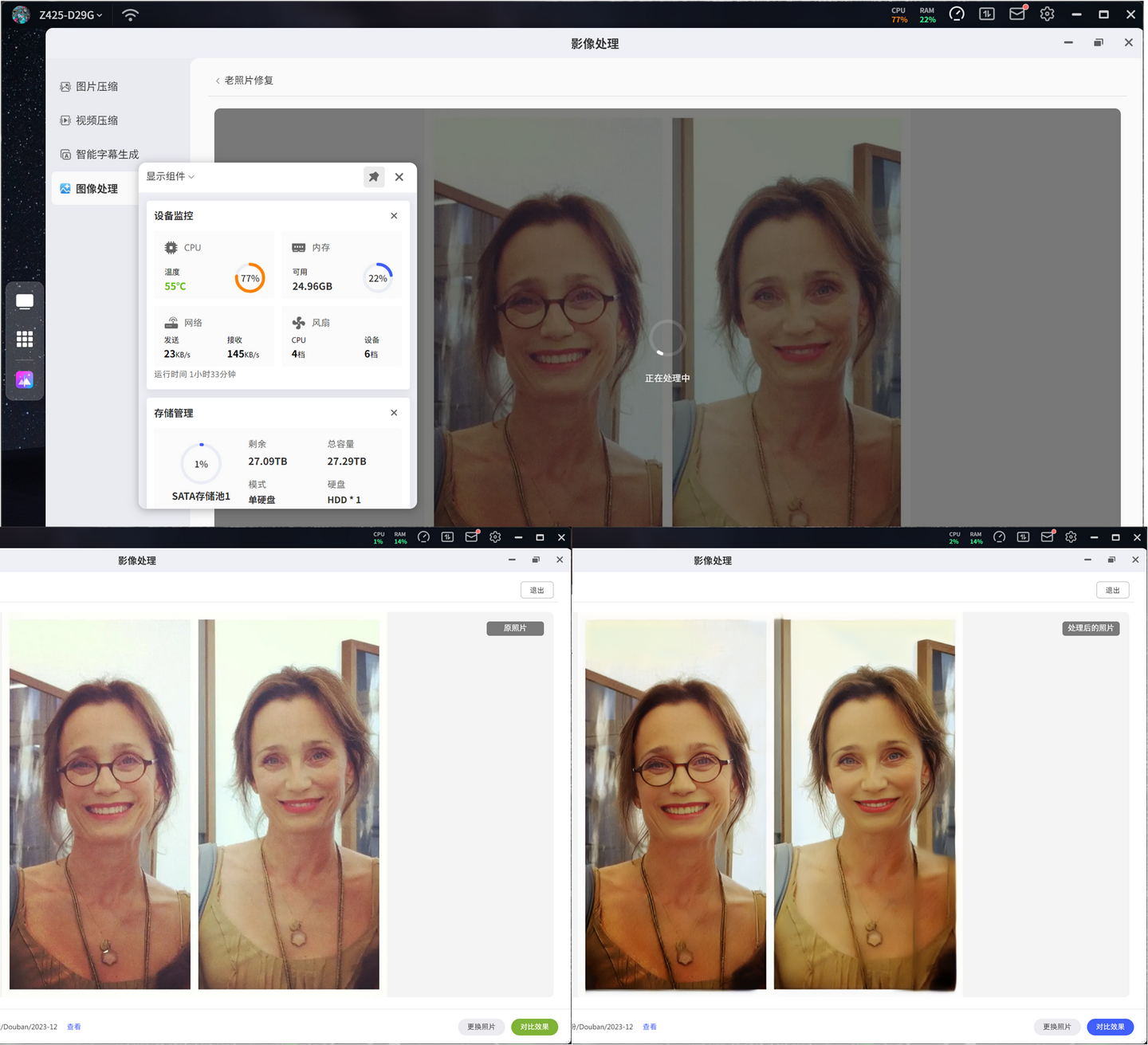 如上可以看到借助Z425可以很快的实现【老照片清晰修复】,性能更好跑起来更快。