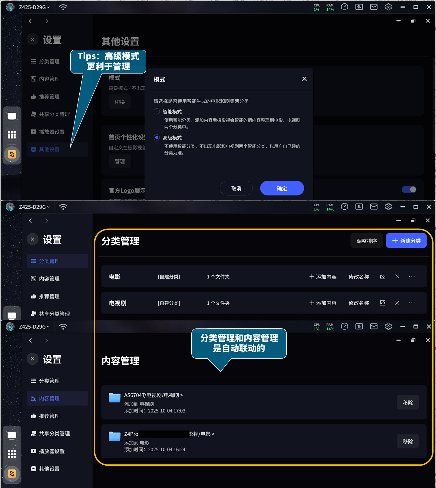 从首发功能更新来看,Z425主要多了两个【应用商店】和【即插即用】菜单按钮,实际还有一个【AI空间】菜单按钮并不在“全功能窗口”中显示,简单来说【AI空间】是一个独立的功能: