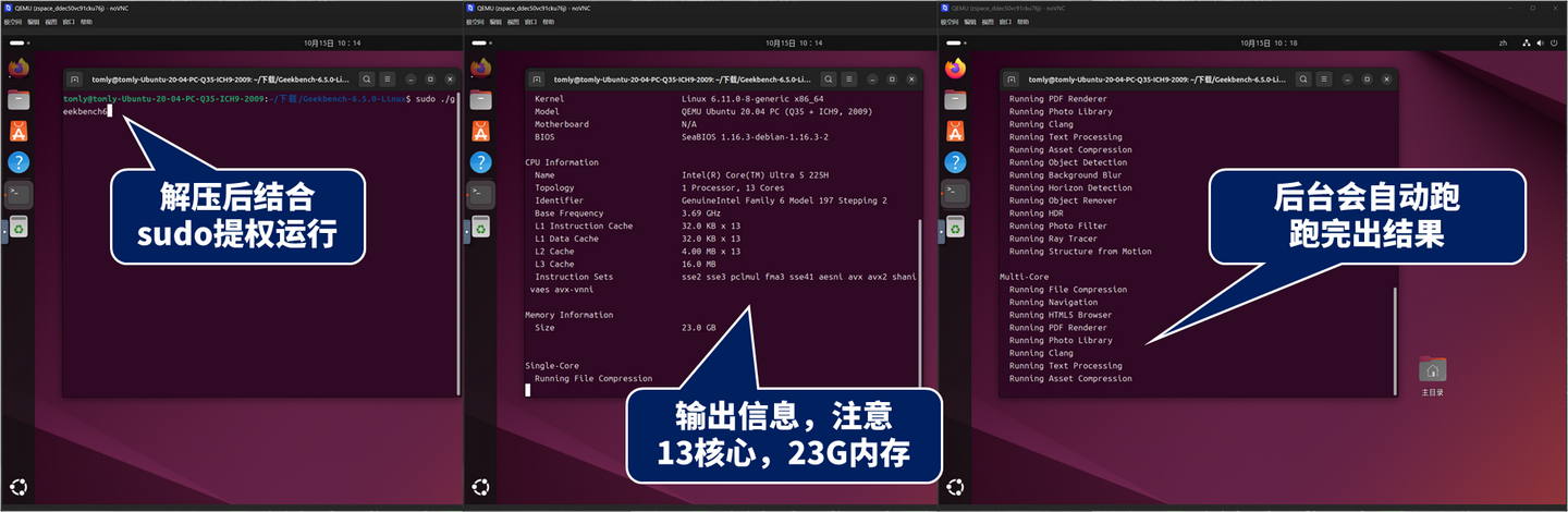 那么性能如何呢?我们基于跨平台的GeekBench6挂极空间的虚拟机里面简单跑一下: