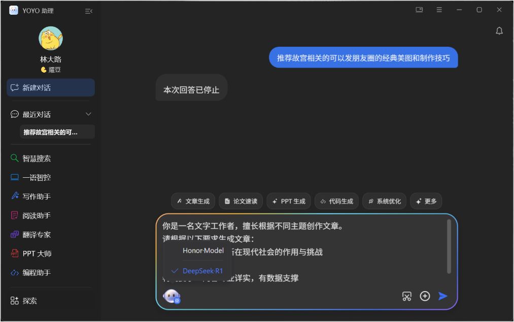 而前面说到的DeepSeek-R1是很早极空间就有的,只是受制于以往的核显的AI算力不强,但是酷睿Ultra5 225H就不同了,我自己用的Ultra5 225H轻薄本就自带这种功能:
