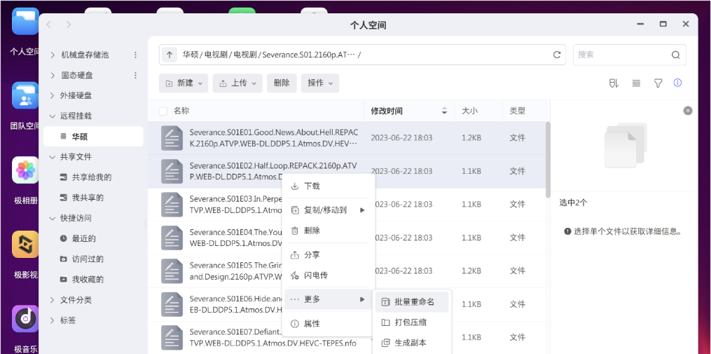 而说到资源管理器,也就是极空间的【个人空间】和【团队空间】,这里简单说几点,一方面是有一些用户不太理解这个【团队空间】的场景和范围,另一方面就是一些使用小妙招。