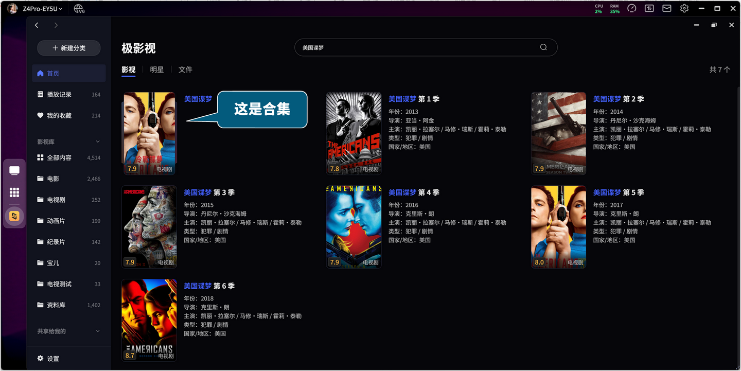 可以看到目前极影视对于电视剧还能显示每一集的介绍,比肩芝杜专业蓝光播放器