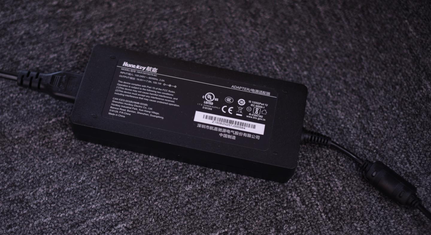 电源适配器(Z423旗舰版为19V/6.3A)上也可以看到巨幅提升,直接150瓦的航嘉电磁屏蔽电源: