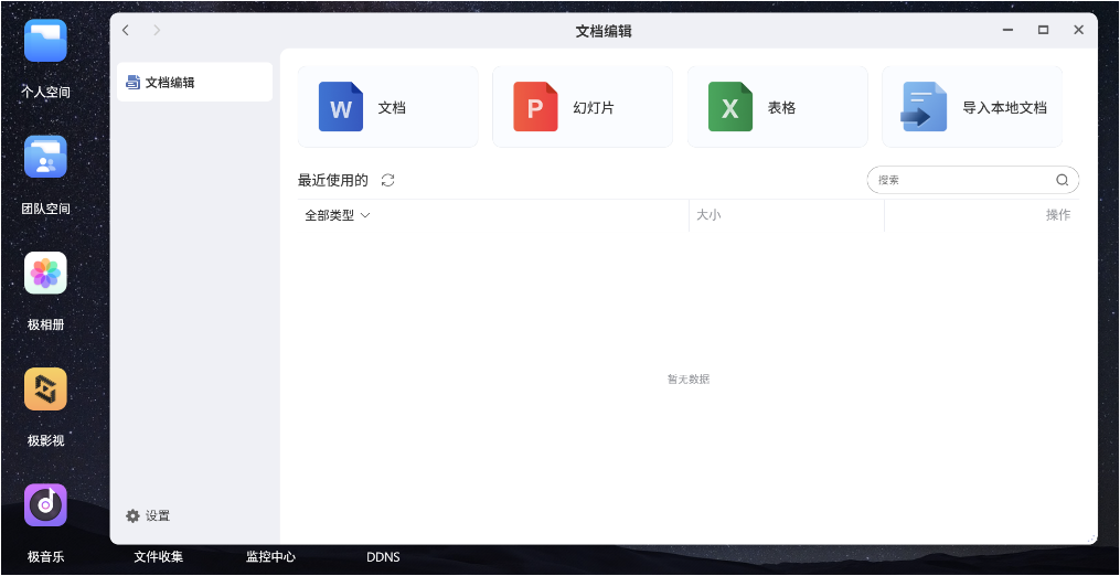 如果你没有用过,或者说暂时不知道,是没法理解【云】这个概念为什么代表了先进生产力。而极空间是把云存储、云生产力体现在每一个方方面面的。类似于常见文档,极空间很早就更新了【文档编辑】能力。